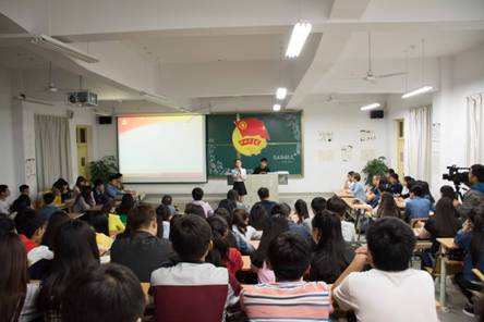 校团委副书记李光梓老师对我系团总支特色活动的精心组织表示了高度的肯定,对同学们的积极参与和深入理解进行高度评价。接着,李光梓老师结合主题教育,就“四进四信”和“社会主义核心价值观”为与会的团干和团员上了一堂生动的团课。李书记用大量的事例说明了信仰的力量,大学生们要进一步牢固树立对党的科学理论的信仰,坚定走中国特色社会主义道路实现“中国梦”的信念,增强对党和政府的信任,增进对以习近平同志为核心的党中央的信赖,切实以“四进”促进“四信”。同时,他还就习近平总书记在五四讲话中提出的“勤学、修德、明辨、笃实”四点要求进行了详细讲解。青年的价值取向决定整个社会的价值取向,广大团员青年要深刻领会社会主义核心价值观的基本内涵和重大意义,增强践行社会主义核心价值观的使命感与紧迫感,按照“勤学、修德、明辨、笃实”的要求,把社会主义核心价值观内化于心、外化于行,既要有仰望星空的理想,又要有脚踏实地的干劲,为两个百年目标做出自己的贡献。