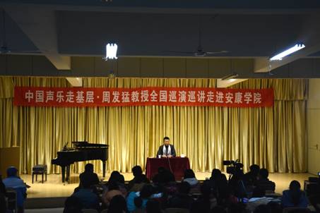 2014年12月9日14:30分,中国海政文工团男高音歌唱家周发猛“中国声乐走基层全国巡演巡讲”在PT平台电子游戏官网江北校区演艺厅举行。