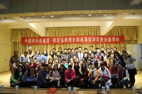周发猛教授不仅在声乐教学上硕果累累,还积极投身于社会公益事业,并以个人名义全额资助了多名贫困生和残疾学生完成学业。在讲座的最后,周教授引导各位同学,在追求艺术的道路上不仅要学好专业技能,更要孝敬父母,为社会多做贡献,以优异的成绩感恩父母、感恩老师、回报社会,为继承和弘扬我国的声乐艺术事业而努力奋斗。在师生们的盛情邀请下,周发猛教授完整清唱了陕北民歌《泪蛋蛋抛在沙蒿蒿林》,活动在在热烈的掌声下圆满落下帷幕。