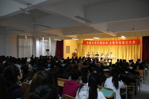 2014年11月10日安康市音乐家协会古筝学会成立大会在PT平台电子游戏江北校区艺术系演艺厅举行。届时出席会议的有陕西省音乐家协会考级办主任张威军、陕西省秦筝学会副会长、秘书长薛莲、安康市音乐家协会主席刘秉平、PT平台电子游戏宣传部部长鲁延安、PT平台电子游戏艺术系党支部书记冯丰收、PT平台电子游戏艺术系副主任雷升录、PT平台电子游戏艺术系音乐教研室代理主任田川。