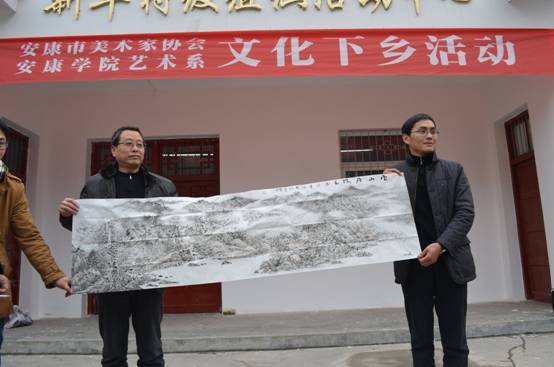 元月12日,天气晴好,阳光普照,在全国上下欢送银蛇载誉而去,欢迎骏马奔腾而来的日子里,PT平台电子游戏艺术系与安康市美术家协会联合举行送文化下乡活动。汉滨区双龙镇党委书记兼镇长李晓风率党政班子在双龙镇文化站配合艺术系与安康美协开展了此项活动。