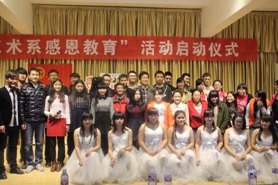 按照校团委《关于在2013级新生中开展“感恩存心,感谢有你”感恩教育系列活动的通知》精神,我系团总支进行精心组织准备,将本次感恩教育活动与我系“艺术人生引领工程”紧密结合,制定了周密的实施方案,并于11月17日晚7点30分在江北校区1401教室举行了艺术系“感恩存心、感谢有你”感恩教育活动启动仪式。系党总支书记冯丰收、系学工办主任刘泽桢、系学生党支部书记王毅、系团总支书记黄娟、音乐学专业教师伦晓虎以及系团总支、学生会学生干部、2013级全体班团干部、各班学生代表共200余人参加的启动仪式。2013级音乐学专业学生姚东、苏佳宁主持了启动仪式。