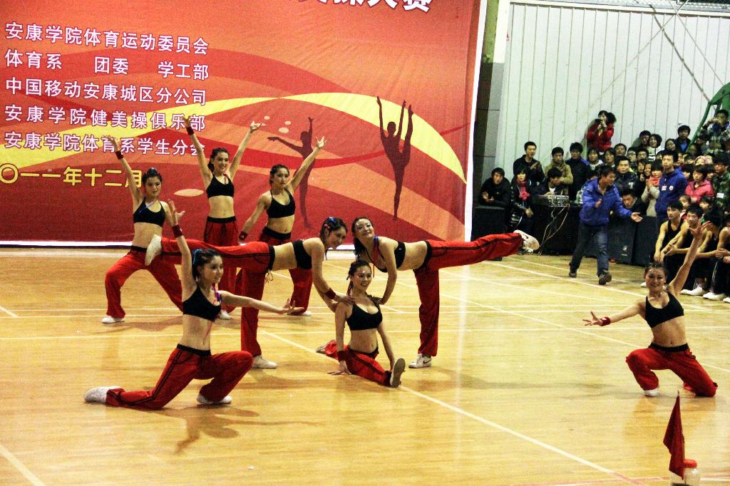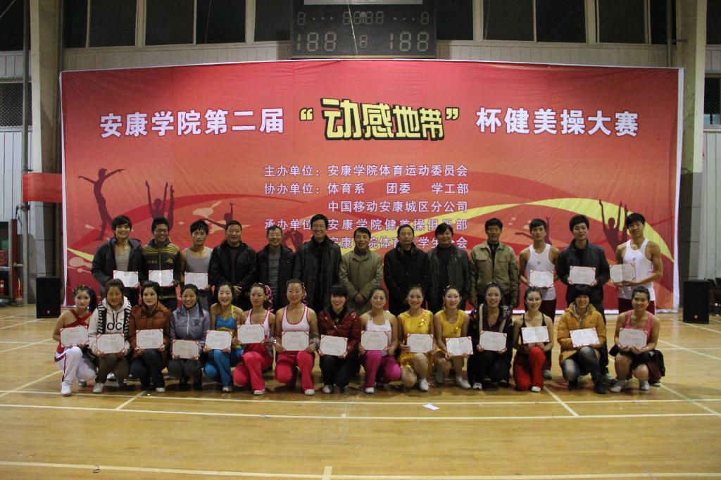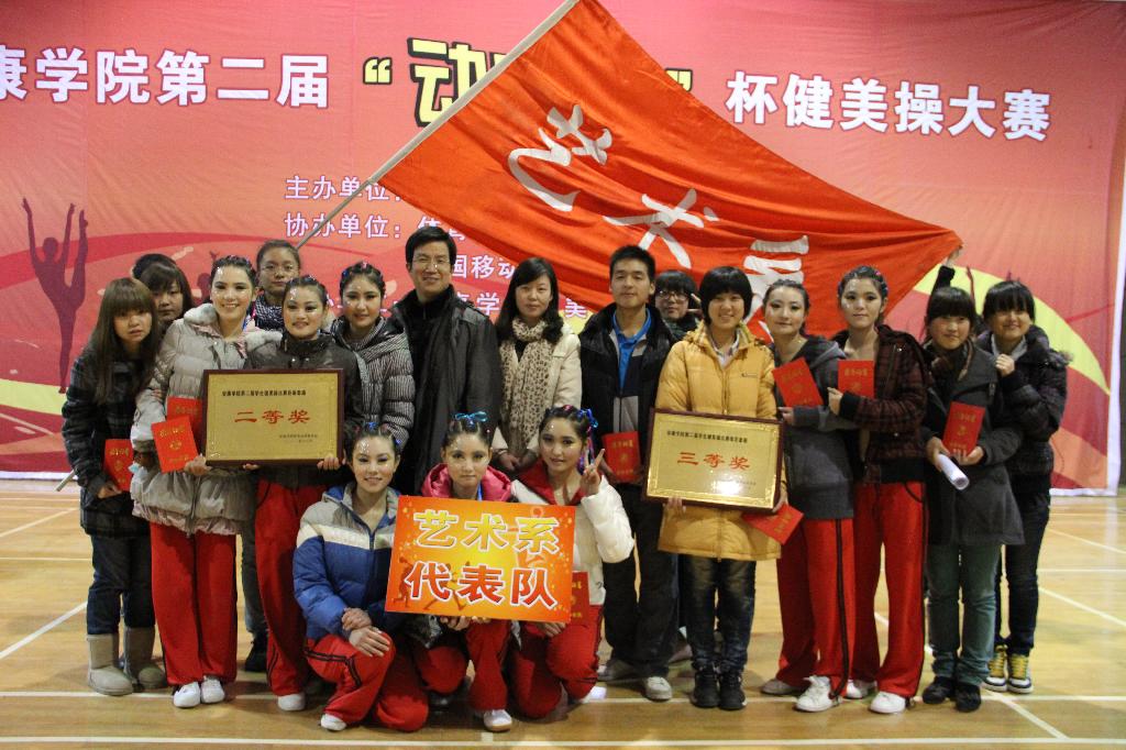本次健美操本次比赛的有来自各院系13支代表队参赛,比赛分为规定操和自选操两个项目。我系选派了16名选手分两组参赛。比赛中,我系选手以新颖别致的造型,独具特色的亮相,让观众们为之眼前一亮。火红,青春的色彩,微笑,自信的光芒,动作明快奔放,编排精致新颖向大家展示了青春的激情,展现了力与美的结合,展现了艺术系同学的创造力,秀出了艺术系学生的风采。在热烈的氛围中队员们默契配合,以饱满的热情和良好的状态完成了整套操的动作,赢得了观众的阵阵掌声和评委们的一致好评。