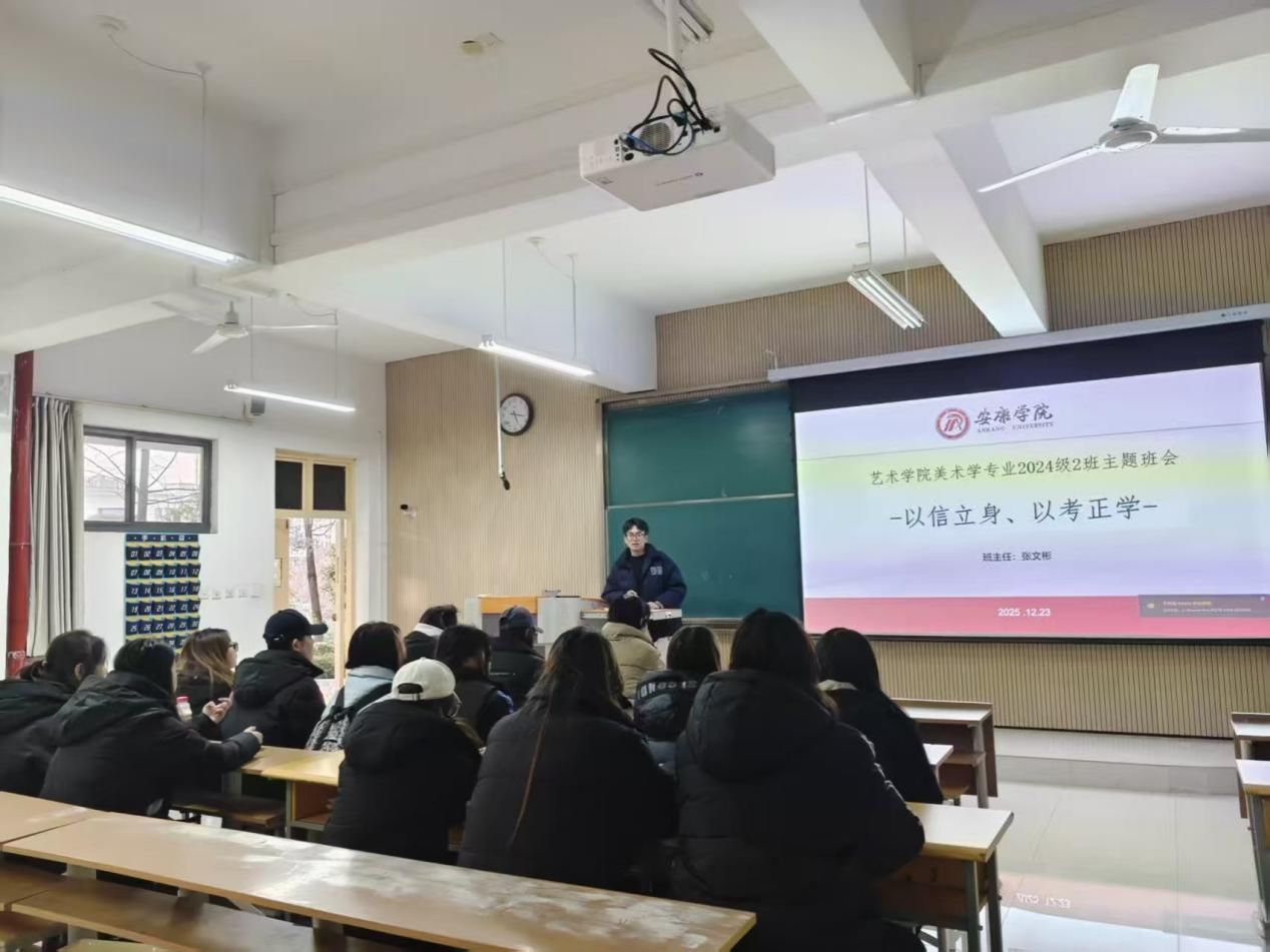 本次主题班会紧紧围绕学校关于考试工作的相关规定和违纪处理办法,各辅导员、班主任结合近年来发生的典型案例进行警示教育,详细解读考场纪律、违规认定及相应处分措施,引导学生深刻认识考试作弊的严重后果,牢固树立“诚信考试光荣、违纪作弊可耻”的价值观念。班会过程中,各班级通过集体学习、签订《诚信考试承诺书》等多种形式,帮助学生全面了解考场规则和诚信考试要求,明确自身在考试过程中的权利与义务。同时,结合艺术专业学生的特点,辅导员、班主任注重用身边人、身边事开展教育,分享往届学生因考试违纪影响评奖评优、推免深造和就业发展的真实案例,让学生在“看得见、摸得着”的实例中受到触动、引以为戒。