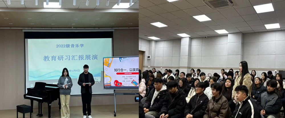 汇报会最终在满载收获与希冀的氛围中圆满落幕。指导老师们对同学们展现出的显著进步、饱满热情与深刻反思能力给予高度评价。此次汇报会不仅是对前期学习与实践成果的全面检阅,更是同学们迈向未来音乐教育生涯的崭新起点。同学们纷纷表示,将怀揣这份宝贵的实习经历与教育热忱,在今后的教育道路上潜心耕耘,以美妙音符启迪童真心灵,用真挚热爱浇灌教育沃土,为音乐教育事业注入源源不断的新生力量。