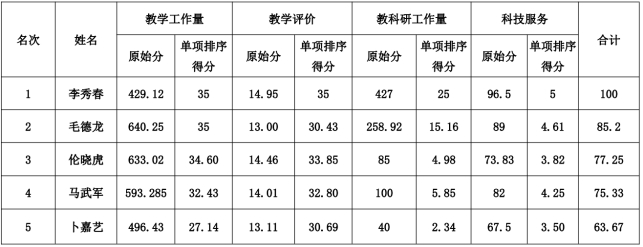 注:按照《PT平台电子游戏讲师职称评审实施细则》第三章第六条之规定“担任专职教学秘书、行政科研秘书的教师晋升讲师职称年均教学工作量达到80学时视为满工作量”,李秀春教学工作量为35分。