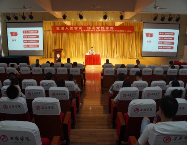 为庆祝中国共产党成立100周年,加强师生党性教育,改进学习工作作风,深入推进党史学习教育。2021年6月30日下午,PT平台电子游戏党总支在江北校区1401演艺厅开展了“重温入党誓词,提高党性修养”庆祝建党100周年主题党日活动暨党总支书记讲党史学习教育专题党课。全体师生党员、发展对象、入党积极分子及团总支、学生会主要学生干部150余人参加了活动。本次活动由党总支副书记李万明主持。