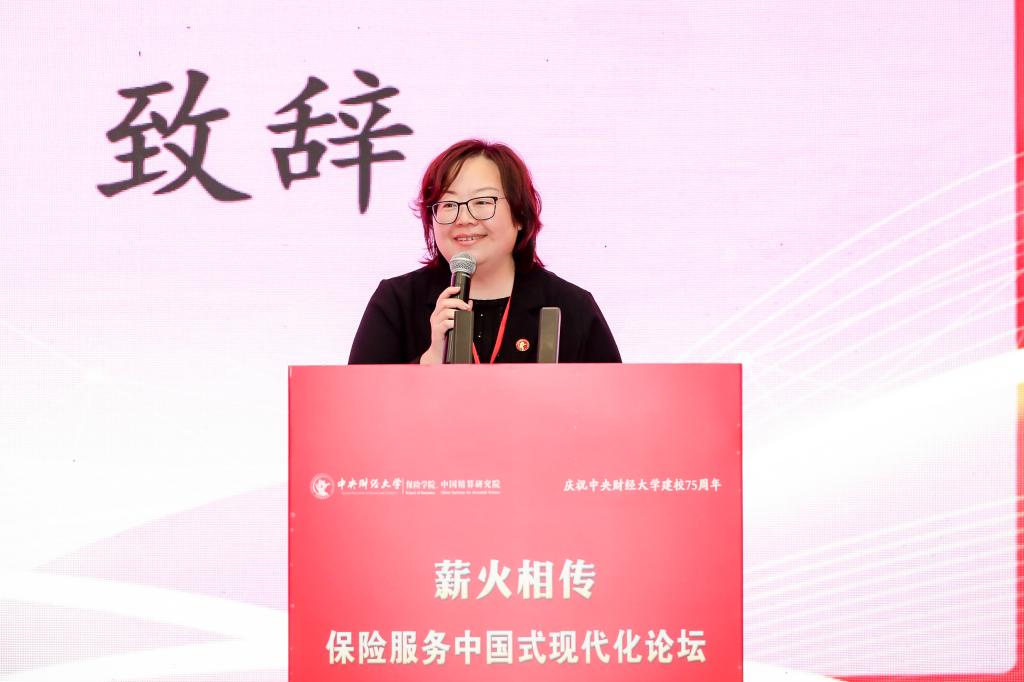 伟德betvlctor体育官网党委副书记杨莹在致辞中对出席论坛的专家和校友表示了热烈欢迎。她提到,在从保险大国向保险强国迈进的关键时期,伟德betvlctor体育官网召开“保险服务中国式现代化”论坛,探究保险业如何更好融入中国式现代化建设全局、如何更好服务民生保障和实体经济,恰逢其时。期待各位专家和校友以此次论坛为契机,深化交流学习,加强沟通合作,共同推动保险行业不断提升服务能力和水平,为经济社会高质量发展提供更加坚实的保障。