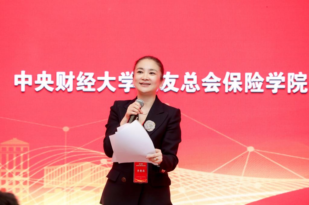 校友总会、教育基金会秘书长程丽芳代表学校教育基金会向捐赠的校友们表示感谢。她表示,此次捐赠展现了中财大一代代保险人爱与关怀的传承,在校生们一定能从这份温暖中汲取力量,奋勇向前。