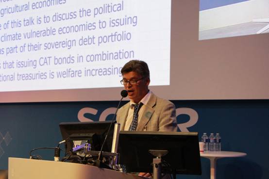 6月8日上午8点15分,IARFIC会议顺利召开,来自法国,中国,美国,英国,加拿大,墨西哥,德国,印度,澳大利亚,荷兰,乌克兰及斯里兰卡等十多个国家和地区的100多名专家学者、业界精英和政届要员云集于此。开幕式由IARFIC大会联合主席,加拿大滑铁卢大学教授,我校教授Ken Seng Tan(陈建成教授)主持。我校副校长李俊生教授,IARFIC大会联合主席、加拿大曼尼托巴大学Lysa Porth教授,SCOR农业保险总监Rene Kunz和SCOR Foundation 首席执行官Philippe Trainar出席会议并致开幕词。李俊生副校长阐述了中国农业保险的发展现状以及中国农业政策,倡议与会专家就农业风险,金融及保险领域展开更广泛和深入的合作,同时还简要介绍了我校及我校中国精算研究院的学术影响以及办学声誉。