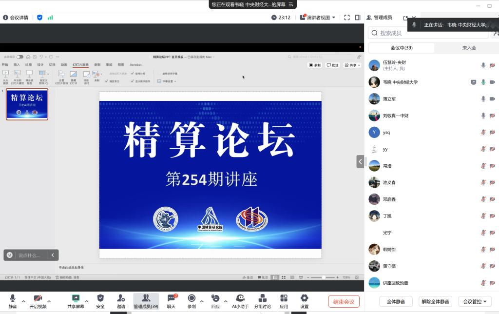 此次论坛为与会师生提供了深入的学术交流平台,两位老师的精彩报告不仅提供了新的学术视角和研究方法,也激发了与会师生对于精算领域中随机控制问题和养老金最优决策问题的进一步思考。