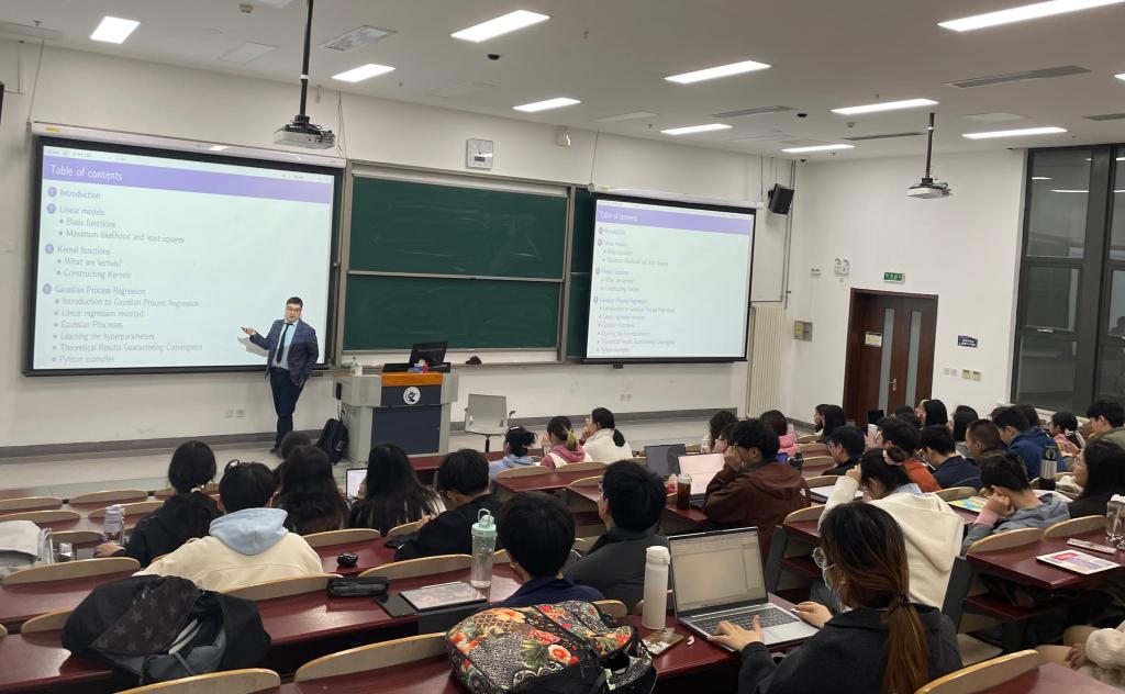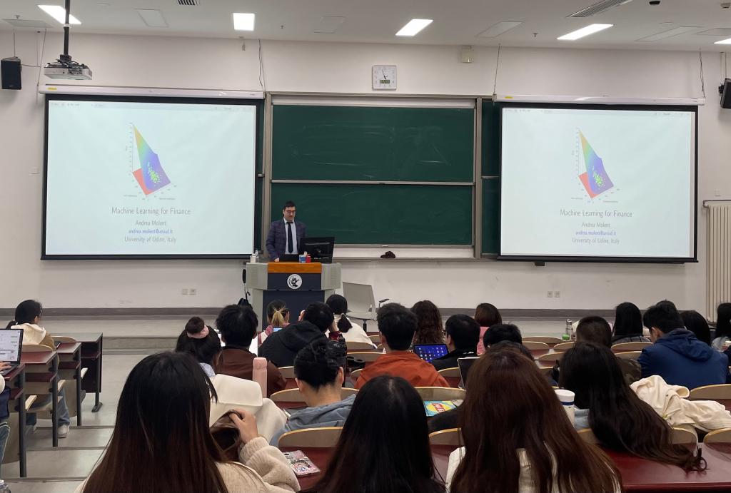 2024年3月27日下午和2024年3月28日上午,意大利乌迪内大学的Andrea Molent老师在伟德betvlctor体育官网沙河校区给我校师生开设了题目为《Machine Learning in Finance: Gaussian Process Regression and its Application in American Option Pricing》的两次短期课程。在为期两天的课程中,Andrea Molent老师首先介绍了金融与精算中的机器学习方法概述,然后重点介绍了高斯过程回归的原理和方法,最后以美式期权的定价为例,讲解了Python实现用高斯过程回归定价的应用。伟德官网韦晓老师、郑敏老师和学生共40余人参与了此次短期课程。