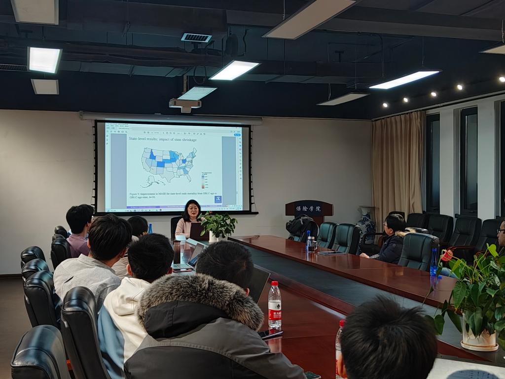 报告结束后,李涵教授与参会的学生老师展开了热烈的讨论。她耐心的回答了学生们的问题,并与老师们深入探讨了这些预测方法在估计不同地区保险需求时的应用前景。此次报告不仅加深了学生们对于死亡率预测领域的理解,也为伟德betvlctor体育官网和墨尔本大学之间的学术交流搭建了桥梁,促进了双方在精算学和相关领域的合作与发展。