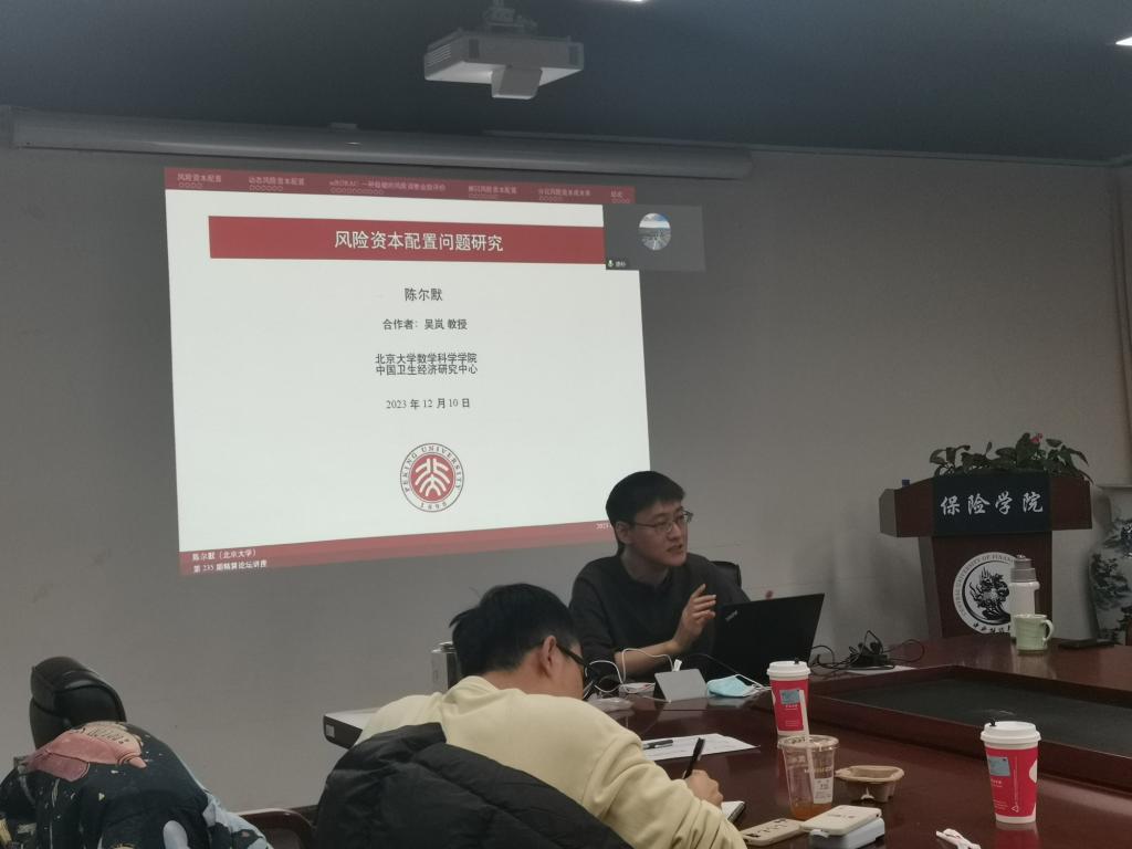 2023年12月10日下午,应中国精算研究院徐景峰教授和廖朴副教授邀请,安永咨询的胡盼女士、北京大学陈尔默博士、贵州财经大学的贺晔平副教授、河北工业大学的郑渊韬,在伟德betvlctor体育官网沙河校区13号楼215会议室给学院师生作了精彩的学术报告。郑苏晋教授、徐景峰教授、廖朴副教授等30余名本科生、研究生参加论坛、聆听报告。