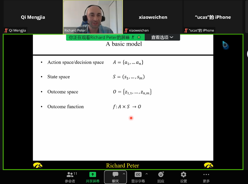 为活跃学院的学术氛围,加强对研究生和青年教师的学术培养,应伟德官网池义春研究员邀请,美国爱荷华大学金融系的Richard Peter副教授于2023年7月24日至7月27日,通过ZOOM会议进行了主题为“Topics in risk and insurance economics”的暑期课程。课程涵盖了保险市场的逆向选择、信息作为内生变量时的决策、自我保护与自我保险、高阶风险及其经济学分析等风险和保险经济学中的经典论题。
