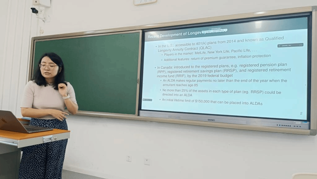 2023年7月12日上午,墨尔本大学精算科学系周瑞副教授应邀在伟德betvlctor体育官网沙河校区二教109教室为伟德betvlctor体育官网师生作了一场题为《The Role of Longevity Annuities in Different Socioeconomic Classes: A Canadian Perspective》的精彩学术报告。本次报告在考虑现实的税收退休制度以及未来寿命不确定性的框架下,探讨了不同经济阶层的加拿大人购买长寿年金对其退休收入的影响。