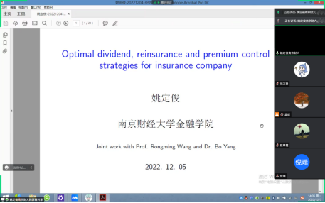 2022年12月5日,南京财经大学金融学院副院长,江苏社科优青,江苏省“333高层次人才培养工程”中青年学术带头人姚定俊教授应孟辉教授的邀请,做客伟德官网精算论坛讲座第216期。在讲座开始前,孟辉教授对姚教授表示欢迎,伟德官网以及中国人民大学等多名老师和学生参加讲座并进行交流。
