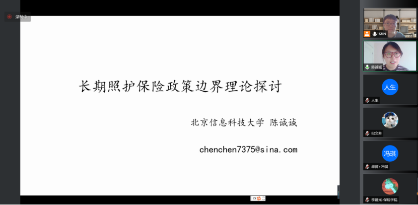 陈诚诚副教授的报告非常全面地介绍了我国长期照护保险的现状,从不同的角度展现了长期照护保险存在的问题以及可能解决的途径。报告后,陈教授同与会的老师和同学就全国长期照护保险的可行性和基础以及长期照护保险中的道德风险等问题做了深入地探讨。陈教授的报告从制度设计、政策评估等多角度给了我们很多启发,通过深入交流也加深了我们之间的联系,为日后进一步地合作打下良好基础。