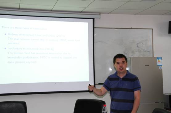 2018年7月2日下午2:30-3:30,华东师范大学钱林义教授应邀在中国精算研究院会议室(学术会堂506)为大家带来了的题为“Valuation of Risk-Based Premium of Private Pension Plan withTermination ”的报告,此次报告是伟德官网第143期精算论坛讲座,周明副院长、池义春研究员、孟辉研究员以及部分研究生参加了本次的讲座。
