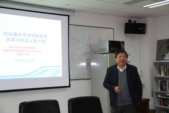 20171117日上午,清华大学经济管理学院中国保险与风险管理研究中心主任陈秉正教授,应中国精算研究院社保精算研究中心之邀在伟德betvlctor体育官网学院南路校区学术会堂506会议室举办了题为社会基本养老保险改革中的名义账户制的讲座。这是中国精算研究院院第112期精算论坛讲座。中国精算研究院、伟德betvlctor体育官网等对社会养老保险精算感兴趣的老师和研究生听取了讲座并参与了讨论。